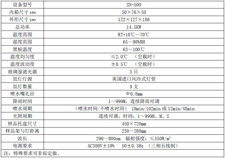 本產(chǎn)品嚴(yán)格按GB/T16422.2-99的技術(shù)參數(shù)設(shè)計制造.同時符合(GB/T1865-2009、GB/T9344-88、ASTMG155、GB/T16422.2、GB/T2423.24-1995、ISO10SB02/B04、SAEJ2527、SAEJ2412)等相關(guān)標(biāo)準(zhǔn)